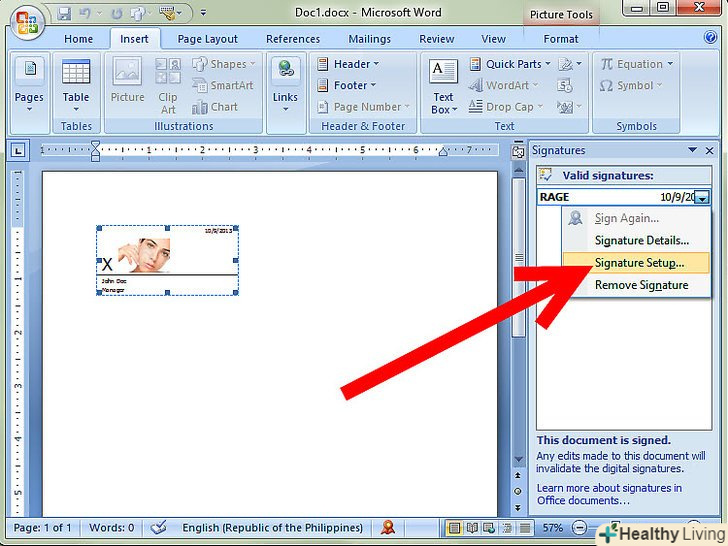 Редагуйте підпис, натиснувши кнопку"Signature Setup".