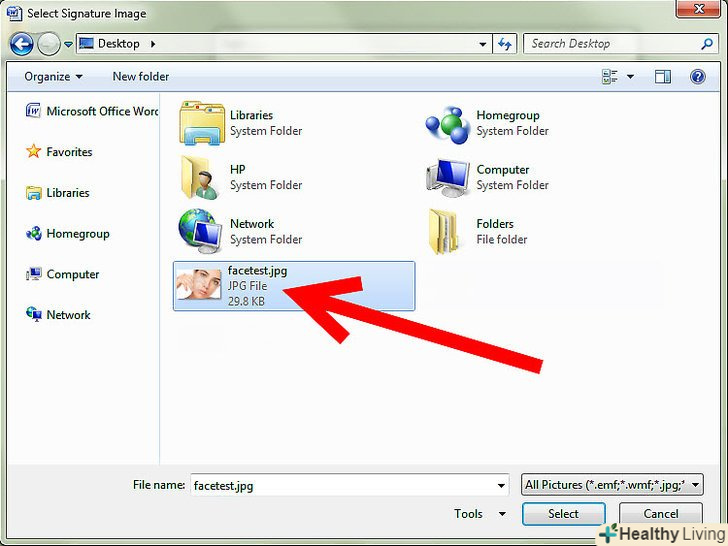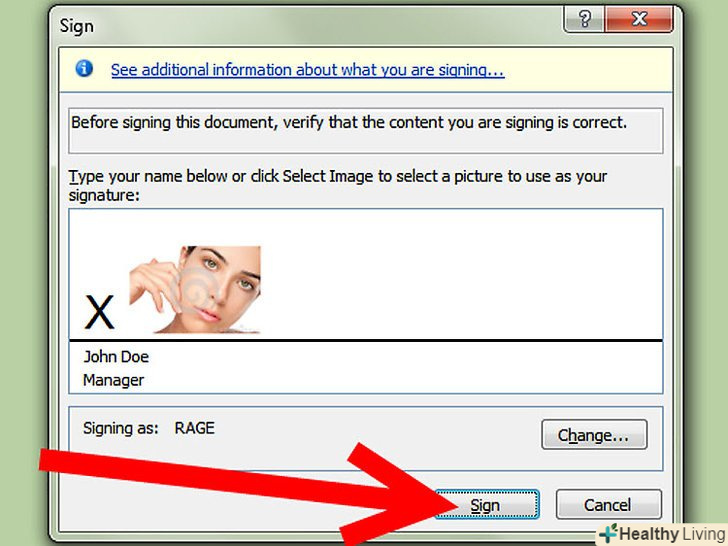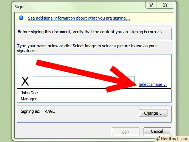Натисніть кнопку " Select Image "(з нового вікна" Sign"), щоб вибрати зображення, яке хочете використовувати в якості цифрового підпису.