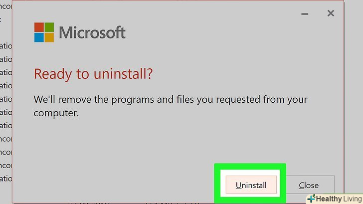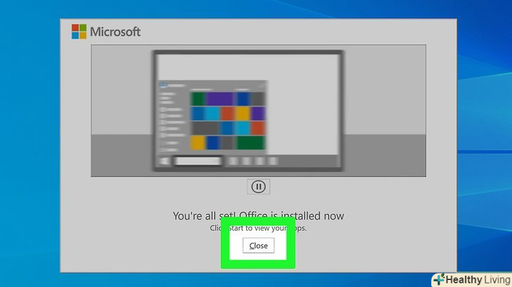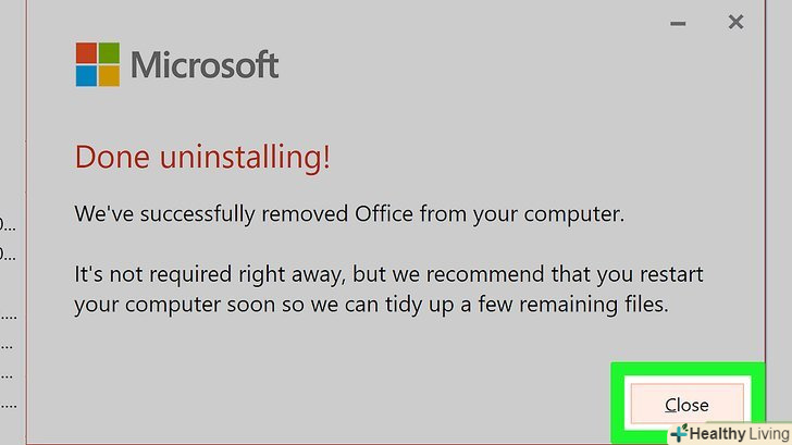 Клацніть поЗакрити У спливаючому вікні.ця кнопка з'явиться у вікні, коли процес видалення Microsoft Office буде завершено.