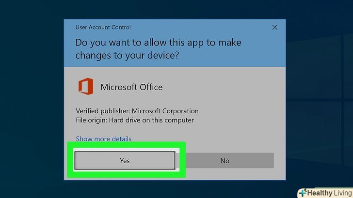 НатиснітьВиконати У спливаючому вікні.розпочнеться установка Microsoft Office.