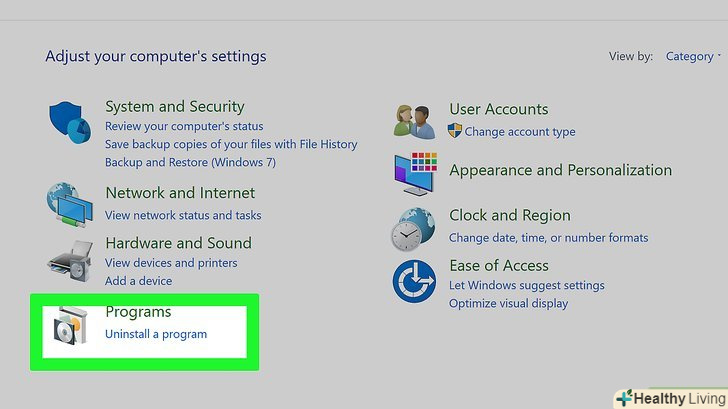 Клацніть поВидалення програми.ви знайдете цю опцію в розділі "Програми". Відобразяться всі встановлені програми.- Якщо вам не вдається знайти цю опцію, відкрийте меню "Перегляд «і виберіть»Категорія". Ви знайдете це меню у верхньому правому куті панелі керування.