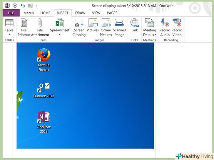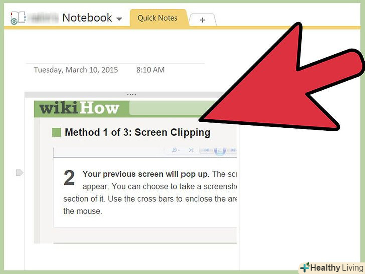 Відкриється вікно OneNote зі зробленим вами скріншотом.тепер ви можете скопіювати і вставити скріншот в електронний лист або в документ Word (або в будь-яке інше місце).- Клацніть по куту скріншота, щоб перетягнути і змінити його розмір.