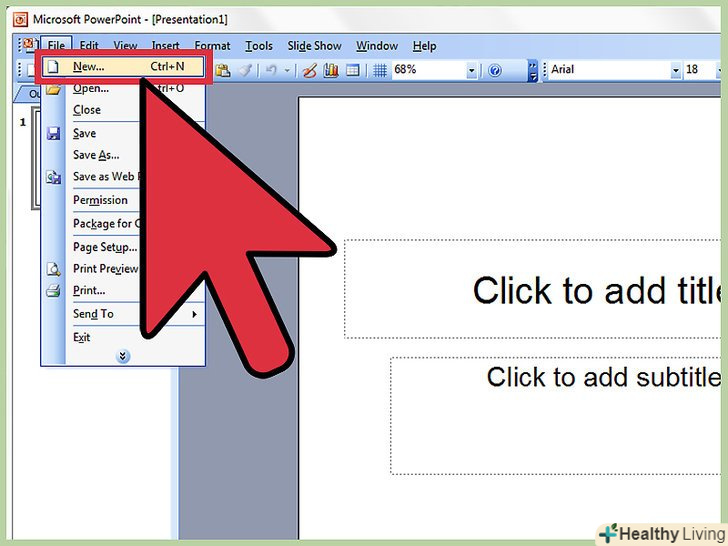 Відкрийте Microsoft PowerPoint, потім натисніть кнопку "Файл" у верхньому лівому куті.натисніть кнопку "Створити" або відкрийте існуючу презентацію.