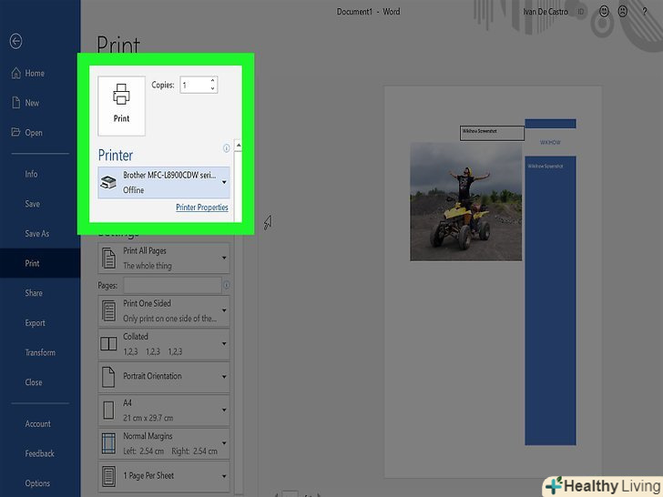 - Виберіть принтер, Параметри кольору та інші параметри.