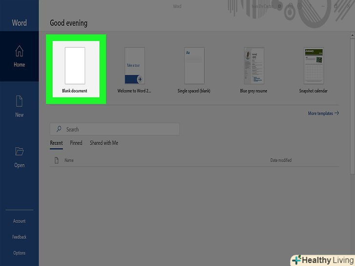 Запустіть Microsoft Word.зробіть це з меню "Пуск «(Windows) або з папки» програми" (macOS). Word відкриється на сторінці "створити".