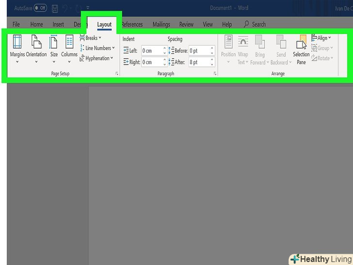 Клацніть по вкладціРозмітка або Розмітка сторінки.назва вкладки залежить від версії Word, а сама вкладка знаходиться у верхній частині екрана.