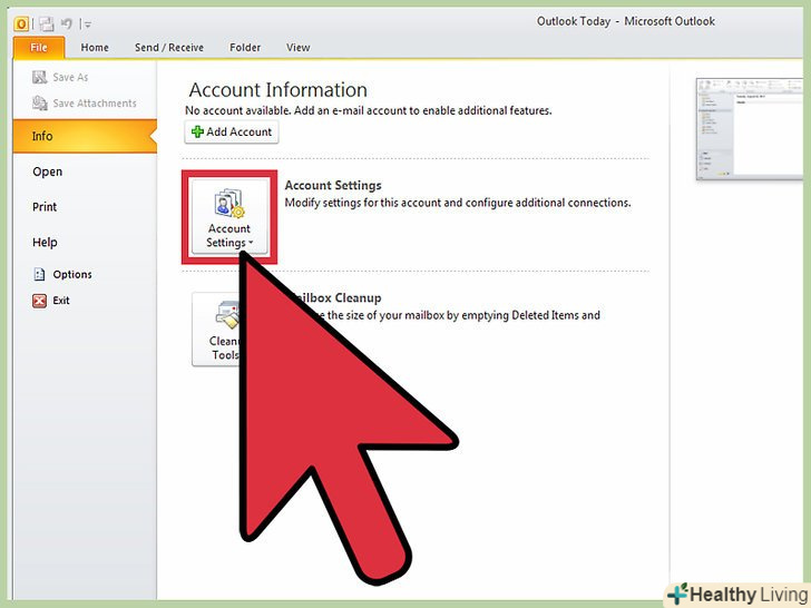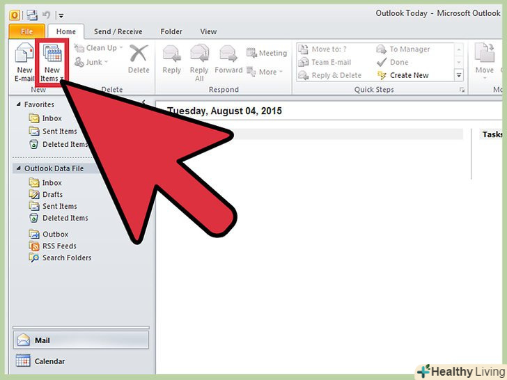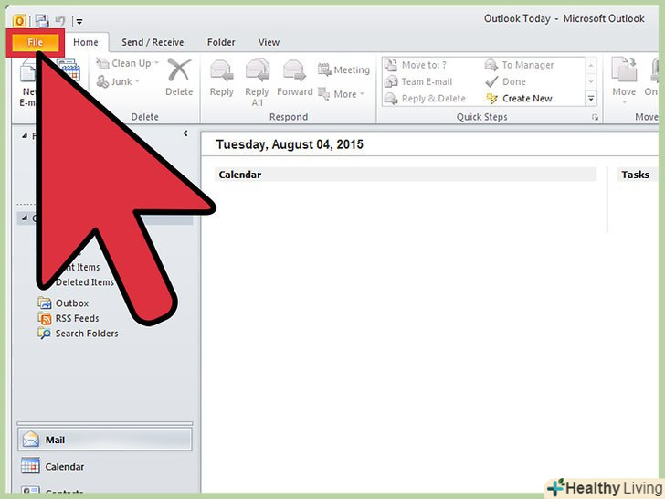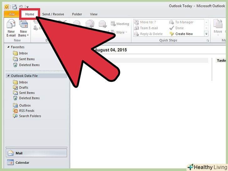 Запустіть Microsoft Outlook 2010, натиснувши кнопку Пуск і знайшовши його в списку програм або клікнувши два рази на ярлику програми на вашому робочому столі.