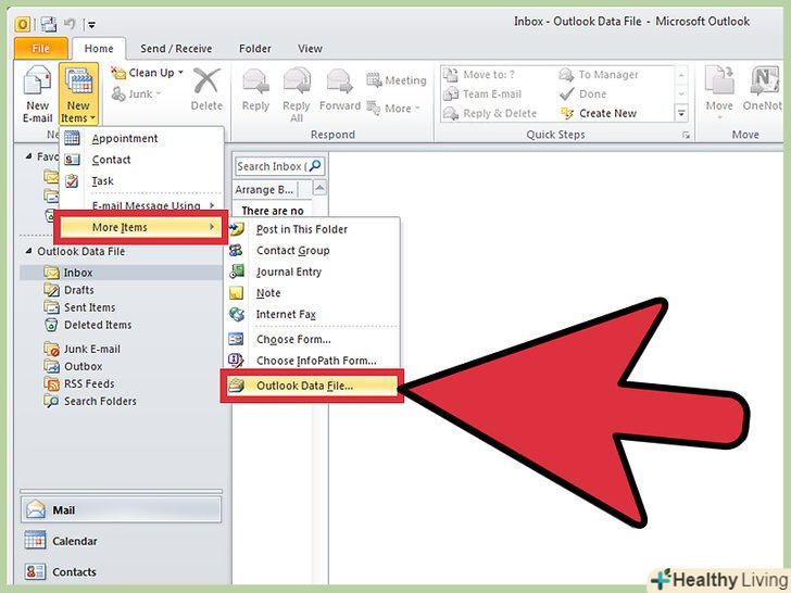 Виберіть опцію "інші елементи", і в випадаючому меню, в самому його низу — натисніть рядок"Файл даних Outlook".