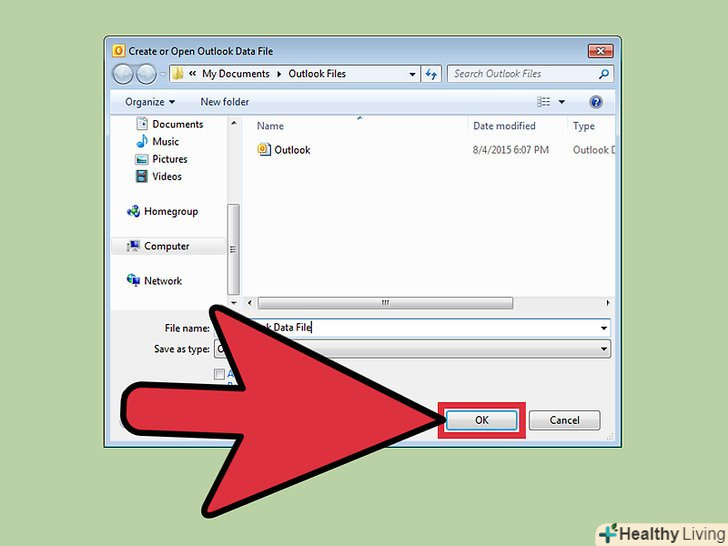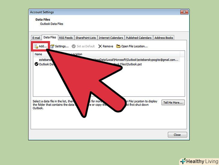 Перейдіть на вкладку " Файли даних "і натисніть кнопку" Додати " у верхньому лівому куті вікна.створиться новий файл PST.- Ви побачите, де Microsoft Outlook зберігає вашу основну особисту папку в найбільшій секції вікна програми. Щоб зберегти принцип зберігання файлів і спростити завдання, не міняйте місце розташування новоствореної папки.