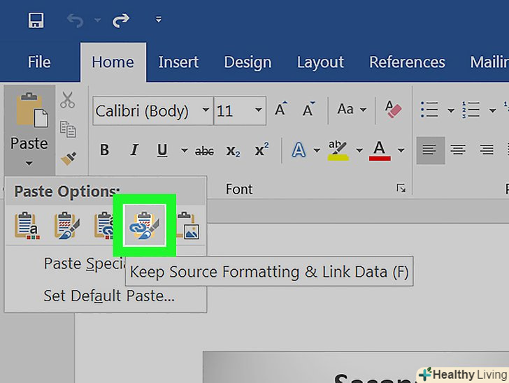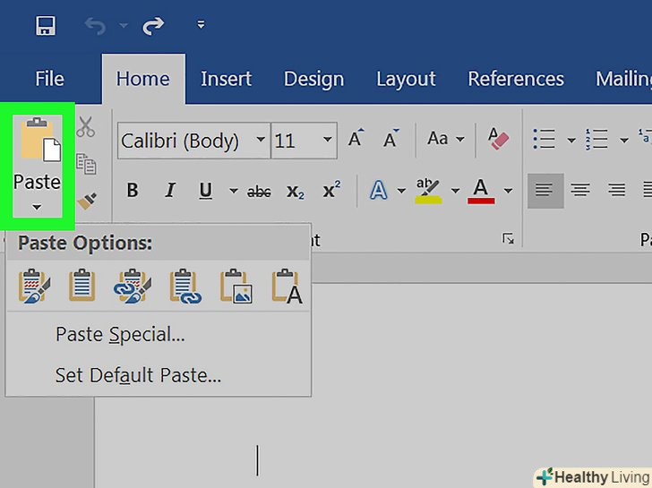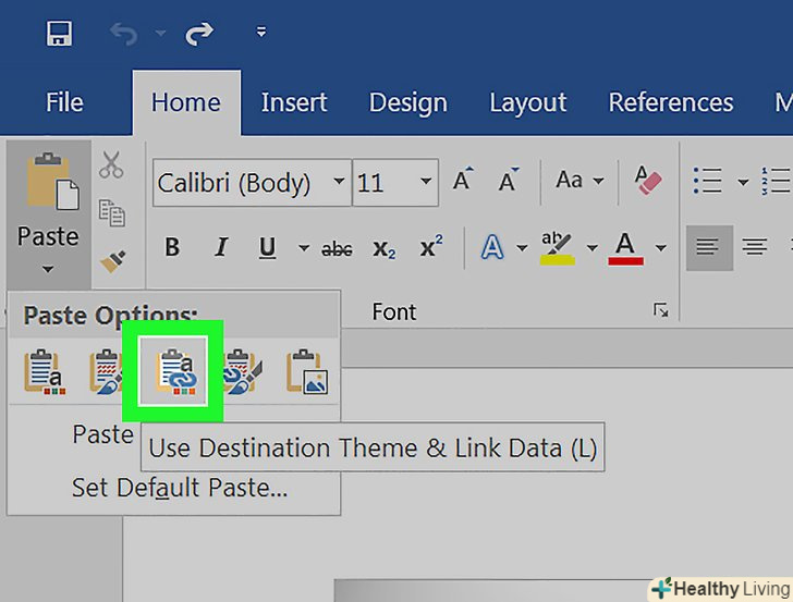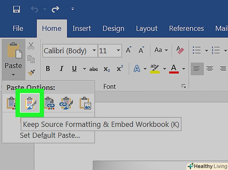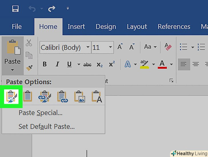 Виберіть параметр вставки.натисніть кнопку "Параметри вставки" в нижньому правому куті таблиці, щоб побачити різні варіанти вставки.- Якщо ви кнопки» Параметри вставки " немає, значить, вона неактивна. Щоб включити її, перейдіть в» Параметри "Word'а і відкрийте вкладку "Додатково". У розділі «вирізання, копіювання і вставка» поставте прапорець біля опції «показувати кнопки можливостей вставки», щоб додати перевірку.[2]