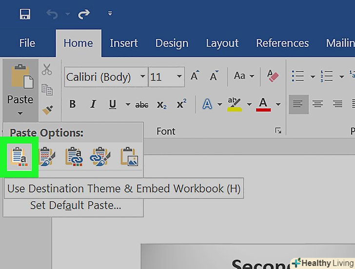 Виберіть параметр вставки.натисніть кнопку "Параметри вставки" в нижньому правому куті таблиці, щоб побачити різні варіанти вставки.- На відміну від вставки даних Excel, при вставці діаграми є два різних набору варіантів на вибір. Можна змінити параметри діаграми, а також параметри форматування.