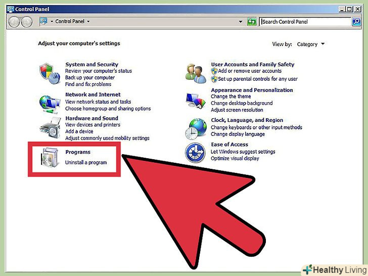 Відкрийте Керування програмами.якщо ваша Панель управління знаходиться в категорії "Вид", то клікніть на посилання"видалення програм". Якщо обрана Категорія іконки, то відкрийте "Програми"або" Додати/Видалити програму".- Відкриється віконце зі списком встановлених програм. Якщо на вашій системі встановлено велику кількість програм, то можливо на їх завантаження піде певний час.