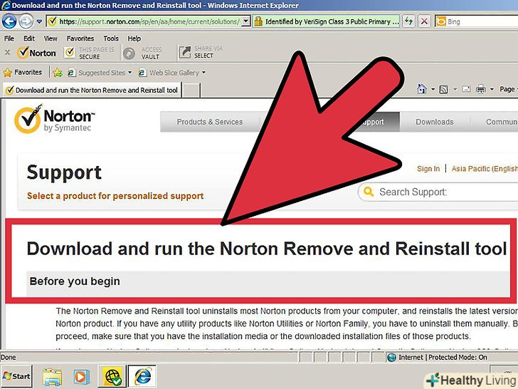 Використовуючи Norton Removal Tool