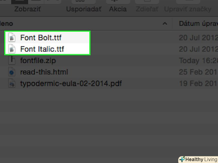 Розпакуйте архів або вийміть шрифти з їх ZIP файлів.як тільки ви їх розпакуєте, вони повинні мати розширення файлу .ttf, що означає "TrueType fonts".