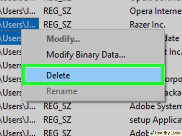 У меню виберіть< span class="nowrap" title="This is not a clickable button; it illustrates the button one should find." style="font-family:Lucida Sans Unicode,Lucida Grande,sans-serif;font-size:14px;padding:0em 1em; border:1px solid; border-color:#AAA #555 #555 #AAA; -moz-border-radius: 4px; -webkit-border-radius: 4px; border-radius: 4px; background-color: #F2F2F2; background-image: -moz-linear-gradient(top, #FCFCFC, #E0E0E0); background-image: -o-linear-gradient(top, #FCFCFC, #E0E0E0); background-image: - webkit-linear-gradient(top, # FCFCFC, #E0E0E0); background-image: linear-gradient(top, #FCFCFC, #E0E0E0);">видалити. елемент буде видалений.- Увага! Не видаляйте елементи реєстру, які не пов'язані з програмою razer. В іншому випадку система буде працювати зі збоями.