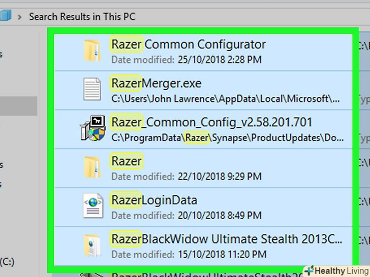 В рядку пошуку введітьRazer, а потім натисніть ↵ Enter.рядок пошуку розташований у верхньому правому куті вікна Провідника. Будуть знайдені всі елементи, пов'язані з Razer (на їх пошук піде кілька хвилин).
