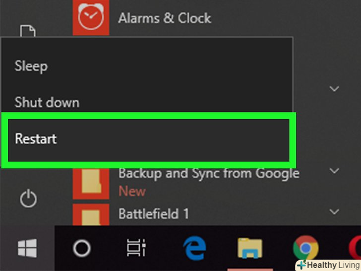 Перезавантажте комп'ютер.якщо програма Razer Synapse була успішно видалена, просто перезавантажте комп'ютер. Якщо ні, в реєстрі залишилися записи програми. У цьому випадку створіть резервну копію важливих файлів і перезавантажте комп'ютер:[2]- Відкрийте меню "Пуск".