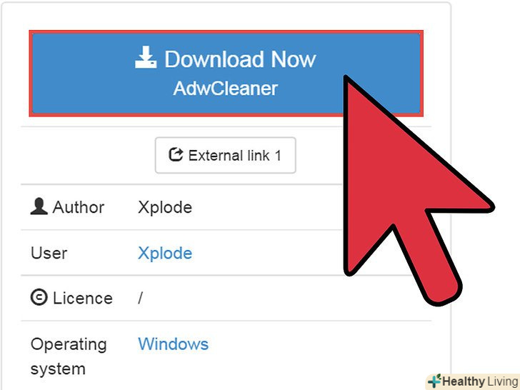 Встановіть і запустіть AdwCleaner.дотримуйтесь інструкцій на екрані, щоб встановити програму, а потім запустіть її і натисніть "Сканувати". AdwCleaner просканує систему на наявність шкідливих програм.- Після завершення сканування натисніть "Очистити", щоб видалити знайдені шкідливі програми/файли.