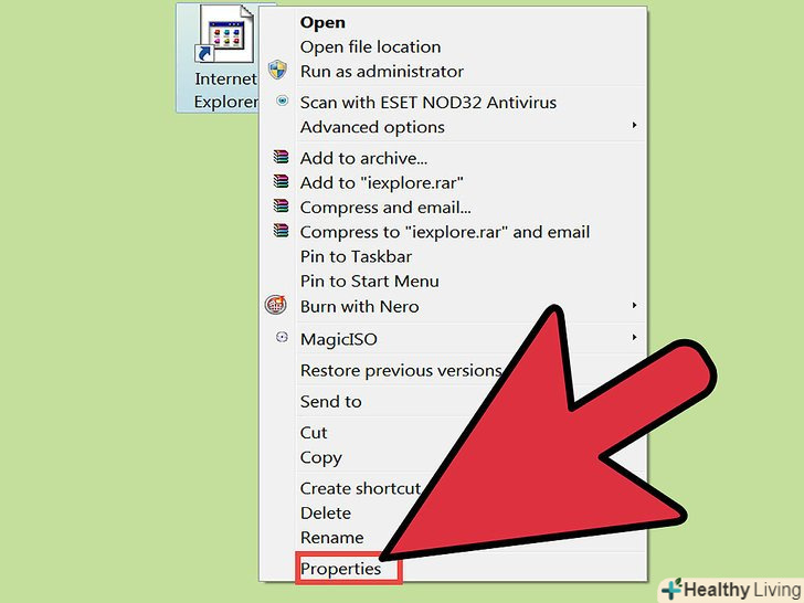 Клацніть правою кнопкою миші на ярлику та виберіть "Властивості".