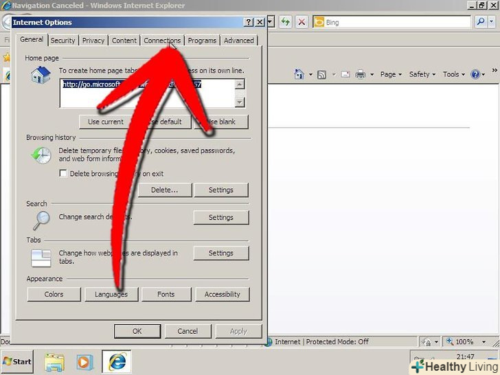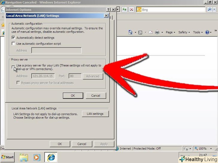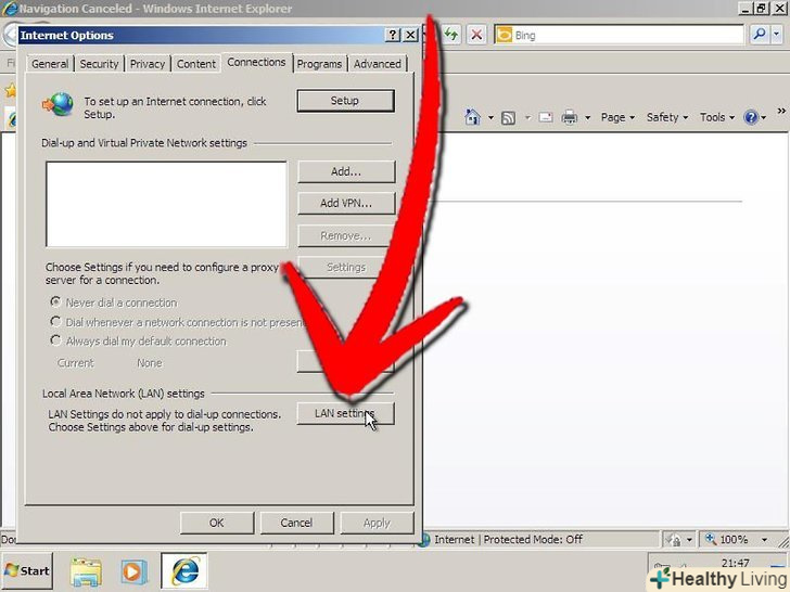 Поміняйте налаштування LAN. AntiVirus Live змінює налаштування мережі LAN, тому у вас не виходить нормально підключиться до Інтернету. Це тимчасове рішення, потрібне для того, щоб ви змогли завантажити потрібні вам утиліти з інтернету.- Відкрийте Internet Explorer і натисніть на кнопку "налаштування"або " Інструменти".