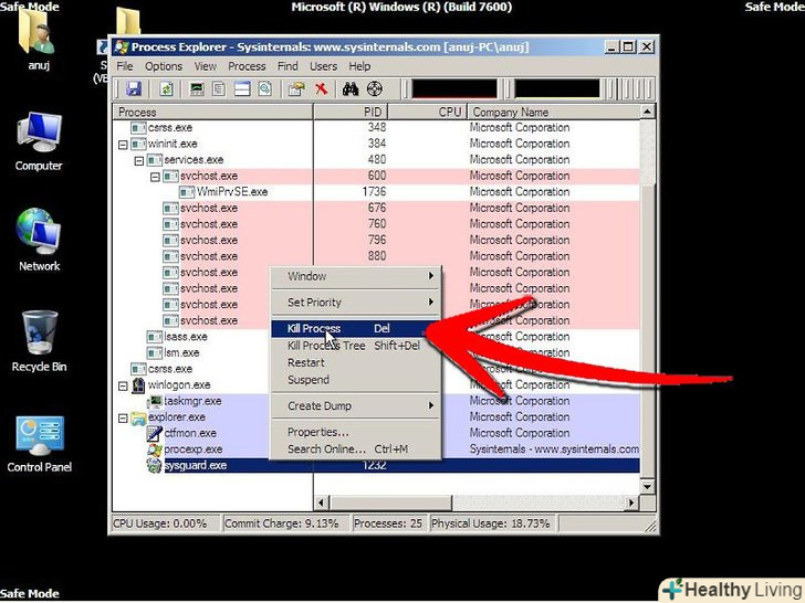 Використовуйте Process Explorer, щоб завершити процес програми AntiVirus Live. процес називається " [букви]sysguard.exe", перед словом "sysguard" стоятимуть якісь випадкові літери. Наприклад, він може називатися " xjgvsysguard.exe”.