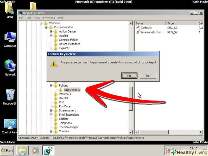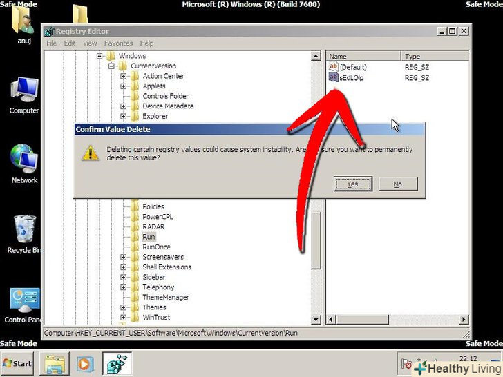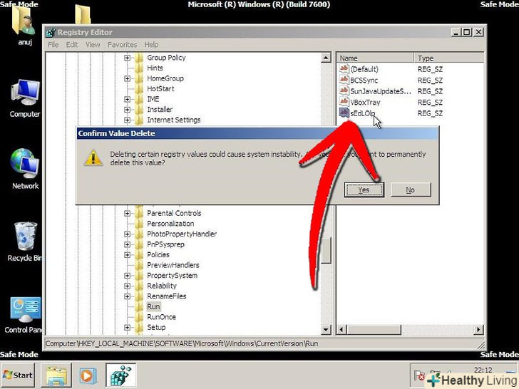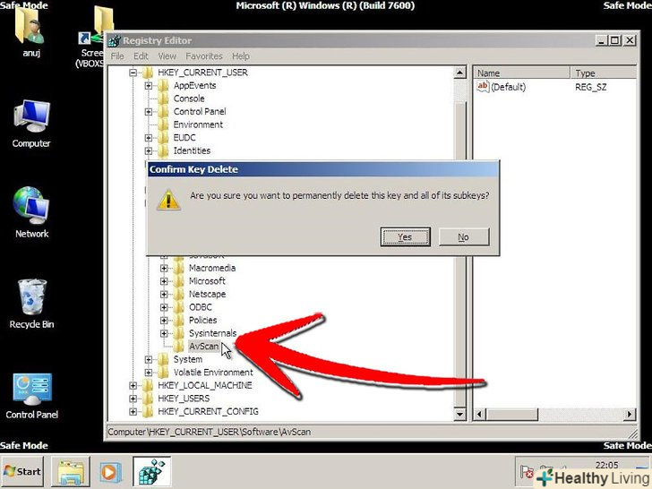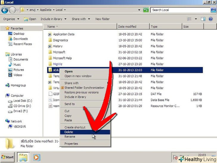 Видаліть папки програми. перейдіть за адресою % UserProfile% \ Local Settings \ Application Data\ "(для vista/Windows 7/Windows8 - %UserProfile%\Appdata\local\)" видаліть папку: [якісь літери]\. Кожен раз букви різні. Але коли ви відкриєте папку, там буде програма sysguard. Значить, папку треба видалити.[1]- Видаліть записи в реєстрі про AntiVirus Live.відкрийте "Редактор реєстру" Windows. Відкрийте меню Пуск, знайдіть файл "regedit". Видаліть нижчезазначені записи в реєстрі. Не видаляйте нічого іншого.