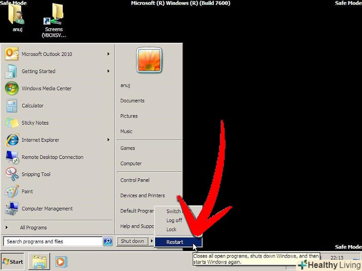 Запустіть комп'ютер в безпечному режимі з доступом до Інтернету.для цього перезавантажте комп'ютер і постійно натискайте клавішу F8, поки не з'явиться меню з додатковими опціями запуску системи. Виберіть Безпечний режим з доступом до Інтернету (Safe Mode with Networking). Якщо у вас не виходить відкрити це меню, спробуйте нестандартно завершити роботу комп'ютера, вимкнувши його кнопкою на корпусі. Після перезавантаження з'явиться потрібне вам меню.