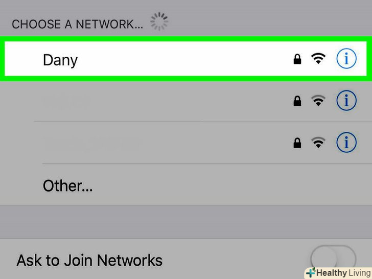 Знайдіть вашу точку доступу. під назвою "виберіть мережу..." ви повинні знайти назву вашої точки доступу в списку. Знайдіть вашу точку доступу. під назвою "виберіть мережу..." ви повинні знайти назву вашої точки доступу в списку.