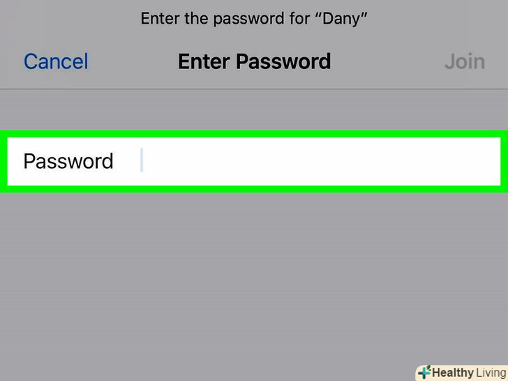 Виберіть ваш iPhone зі списку доступних мереж. Виберіть ваш iPhone зі списку доступних мереж.- Введіть пароль на вимогу для встановлення з'єднання.