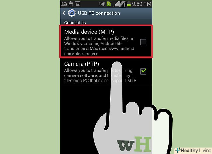 Виберіть " медіа-пристрій (MTP)» на панелі повідомлень, щоб отримати доступ до своїх файлів. [2] Виберіть " медіа-пристрій (MTP)» на панелі повідомлень, щоб отримати доступ до своїх файлів. [2]