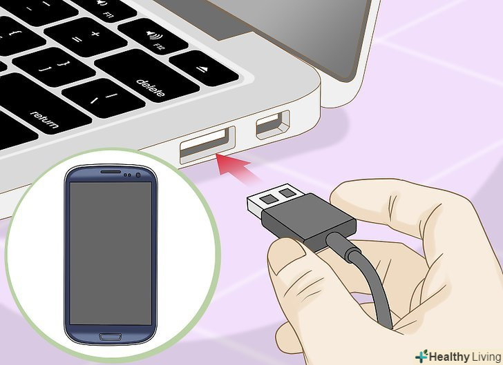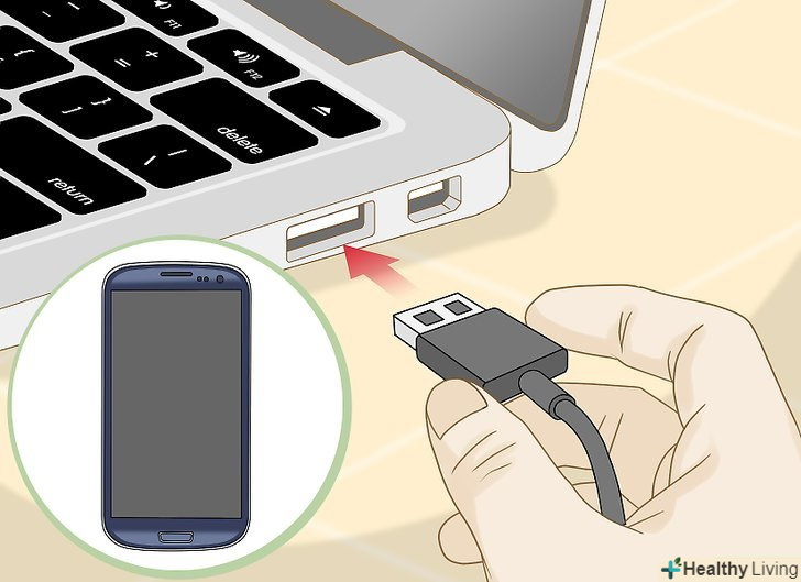 Увімкніть телефон і підключіть його до комп'ютера.перш ніж підключати телефон, зачекайте, поки він повністю не завантажиться, і переконайтеся, що його екран не заблокований. Увімкніть телефон і підключіть його до комп'ютера.перш ніж підключати телефон, зачекайте, поки він повністю не завантажиться, і переконайтеся, що його екран не заблокований.