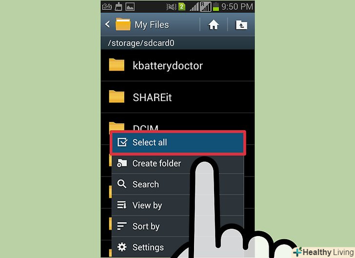 Натисніть на кнопку "Меню «і виберіть» Вибрати все", щоб виділити всі файли і папки і нічого не пропустити. Натисніть на кнопку "Меню «і виберіть» Вибрати все", щоб виділити всі файли і папки і нічого не пропустити.