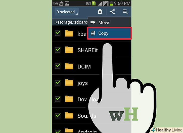 Натисніть на кнопку "Меню «і виберіть»Копіювати".всі вибрані файли будуть скопійовані для подальшого перенесення на SD-карту. Натисніть на кнопку "Меню «і виберіть»Копіювати".всі вибрані файли будуть скопійовані для подальшого перенесення на SD-карту.