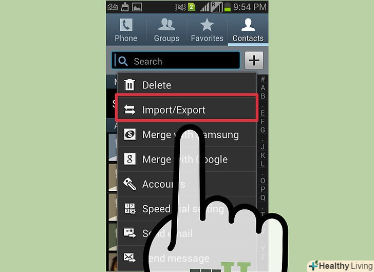 Скопіюйте контакти. як тільки файли будуть скопійовані, експортуйте свої контакти на SD-карту:[5] Скопіюйте контакти. як тільки файли будуть скопійовані, експортуйте свої контакти на SD-карту:[5]- Відкрийте програму "Контакти".