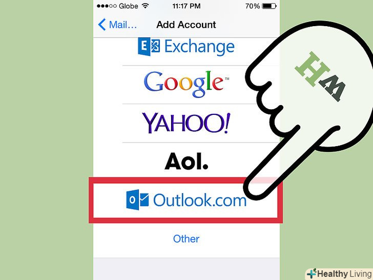 Натисніть «Outlook.com". Hotmail офіційно перетворений в Outlook.com, але ви можете додати ваш аккаунт Hotmail. Натисніть «Outlook.com". Hotmail офіційно перетворений в Outlook.com, але ви можете додати ваш аккаунт Hotmail.