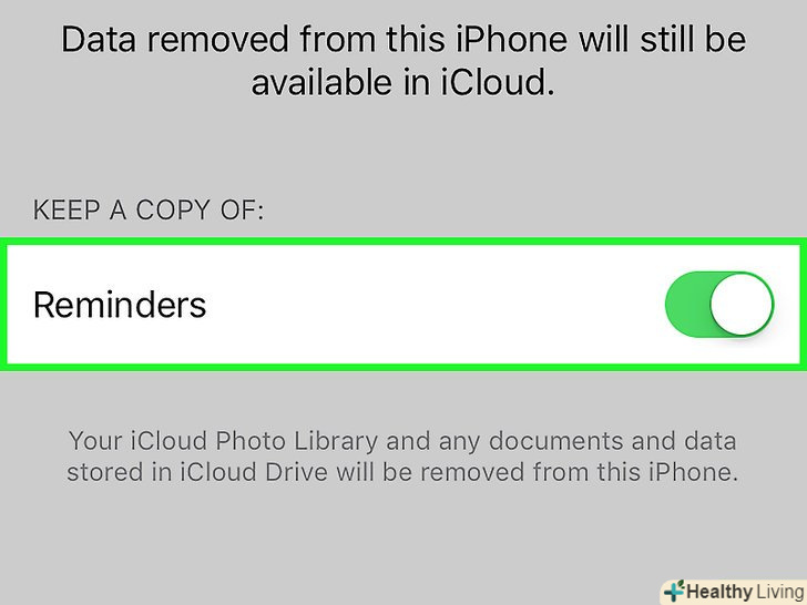 Підтвердіть, що ви хочете видалити iCloud.всі ваші фотографії Photo Stream і документи iCloud будуть видалені з iPhone. Підтвердіть, що ви хочете видалити iCloud.всі ваші фотографії Photo Stream і документи iCloud будуть видалені з iPhone.