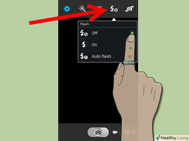Увімкніть / вимкніть спалах. в панелі налаштувань, розташованій в одному з кутів екрану, ви знайдете кілька значків. Увімкніть / вимкніть спалах. в панелі налаштувань, розташованій в одному з кутів екрану, ви знайдете кілька значків.- Натисніть на значок у вигляді блискавки, щоб включити / виключити спалах.