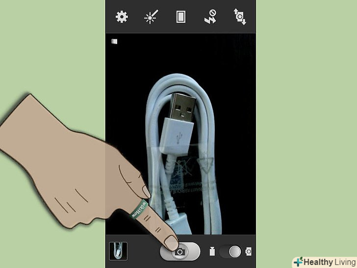 Зробіть знімок. натисніть на кнопку затвора, розташовану в середині правої / лівої сторони екрану, щоб зробити знімок. Стійте нерухомо для отримання чіткого (а не змащеного) зображення. Зробіть знімок. натисніть на кнопку затвора, розташовану в середині правої / лівої сторони екрану, щоб зробити знімок. Стійте нерухомо для отримання чіткого (а не змащеного) зображення.