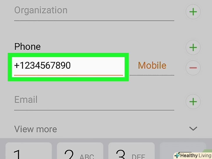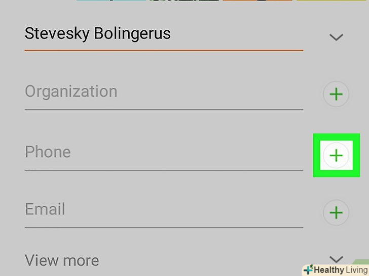 Прокрутіть вниз і натисніть на значок+ У опції «Телефон». це перша опція вгорі розділу з особистою інформацією. Прокрутіть вниз і натисніть на значок+ У опції «Телефон». це перша опція вгорі розділу з особистою інформацією.
