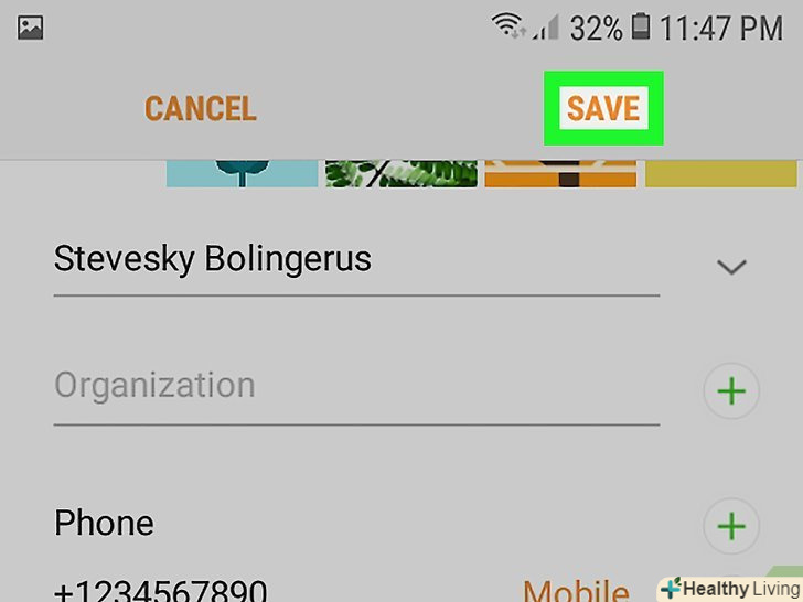 ТоркнітьсяЗберегти.ця друга вкладка знаходиться внизу екрана. Ваш номер телефону буде збережений і відобразиться в додатку «Налаштування». ТоркнітьсяЗберегти.ця друга вкладка знаходиться внизу екрана. Ваш номер телефону буде збережений і відобразиться в додатку «Налаштування».- Якщо в додатку "Налаштування" вашого номера телефону все ще немає, переконайтеся, щоSIM-карта вставлена правильно. Якщо в додатку «Налаштування» ваш номер телефону так і не з'явився, зв'яжіться зі своїм оператором мобільного зв'язку.[2]