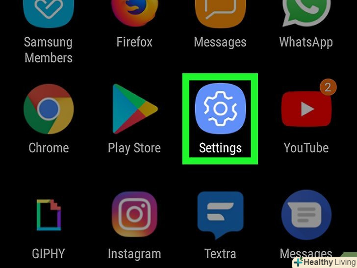 Запустіть додаток «Налаштування».для цього торкніться значка у вигляді шестерінки в списку додатків. Запустіть додаток «Налаштування».для цього торкніться значка у вигляді шестерінки в списку додатків. - Також можна провести по екрану зверху вниз, щоб відкрити панель повідомлень, а потім торкнутися значка у вигляді шестерінки у верхньому правому куті.