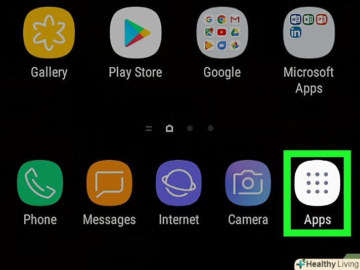 Відкрийте панель додатків. Для цього торкніться значкавнизу головного екрана. Відкрийте панель додатків. Для цього торкніться значкавнизу головного екрана.
