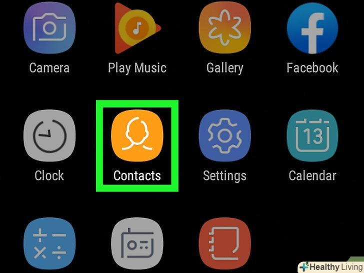 Запустіть програму "Контакти".для цього торкніться значка у вигляді силуету в списку додатків. Запустіть програму "Контакти".для цього торкніться значка у вигляді силуету в списку додатків.- Також можна запустити додаток "Телефон «і натиснути» контакти" внизу екрану.