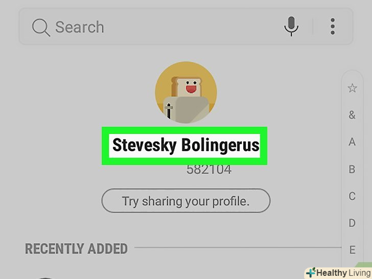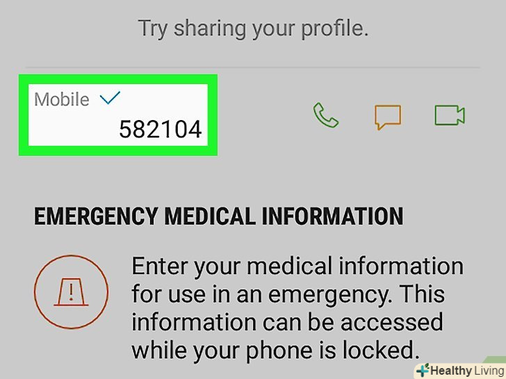 Торкніться свого імені. ви знайдете ім'я вгорі сторінки під зображенням профілю (якщо ви додали його). Також можна натиснути на зображення профілю. Торкніться свого імені. ви знайдете ім'я вгорі сторінки під зображенням профілю (якщо ви додали його). Також можна натиснути на зображення профілю.- Якщо ви відкрили список контактів у додатку "Телефон«, натисніть на своє ім'я в розділі» Я" у верхній частині екрана.
