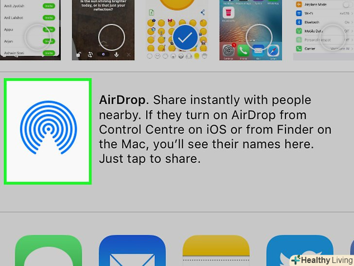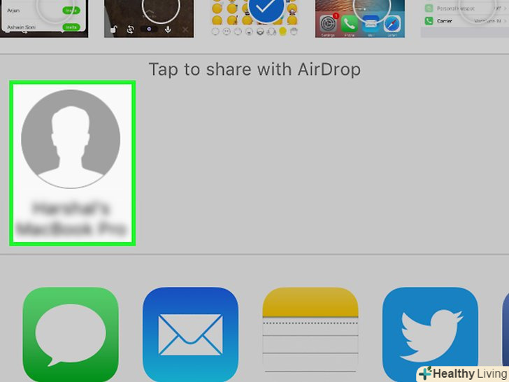 Натисніть на значок "AirDrop".він виглядає як ряд концентричних кіл і розташований у верхній частині меню "поділитися". Bluetooth і Wi-Fi смартфона включаться (якщо вони відключені) і на екрані відобразиться ім'я комп'ютера. Натисніть на значок "AirDrop".він виглядає як ряд концентричних кіл і розташований у верхній частині меню "поділитися". Bluetooth і Wi-Fi смартфона включаться (якщо вони відключені) і на екрані відобразиться ім'я комп'ютера.