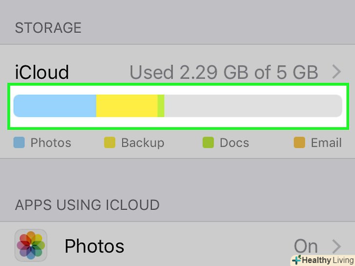 ТоркнітьсяФото.ви знайдете цю опцію у верхній частині розділу "використовують iCloud програми". ТоркнітьсяФото.ви знайдете цю опцію у верхній частині розділу "використовують iCloud програми".
