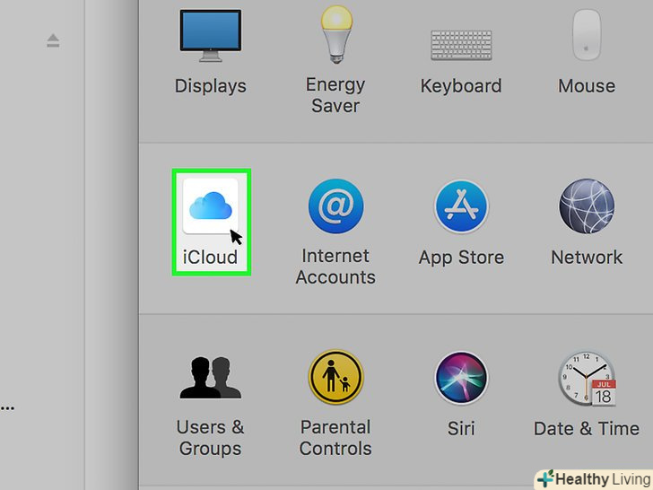 Натисніть «iCloud».ви знайдете цей значок у вигляді хмари в лівій частині вікна "Системні налаштування". Натисніть «iCloud».ви знайдете цей значок у вигляді хмари в лівій частині вікна "Системні налаштування".