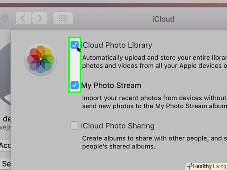 Активуйте синхронізацію фотографій. встановіть прапорець у опції "Медіатека iCloud «і у опції»мій фотопотік". Тепер фотографії, які зберігаються в пам'яті iPhone, будуть доступні на комп'ютері. Активуйте синхронізацію фотографій. встановіть прапорець у опції "Медіатека iCloud «і у опції»мій фотопотік". Тепер фотографії, які зберігаються в пам'яті iPhone, будуть доступні на комп'ютері.