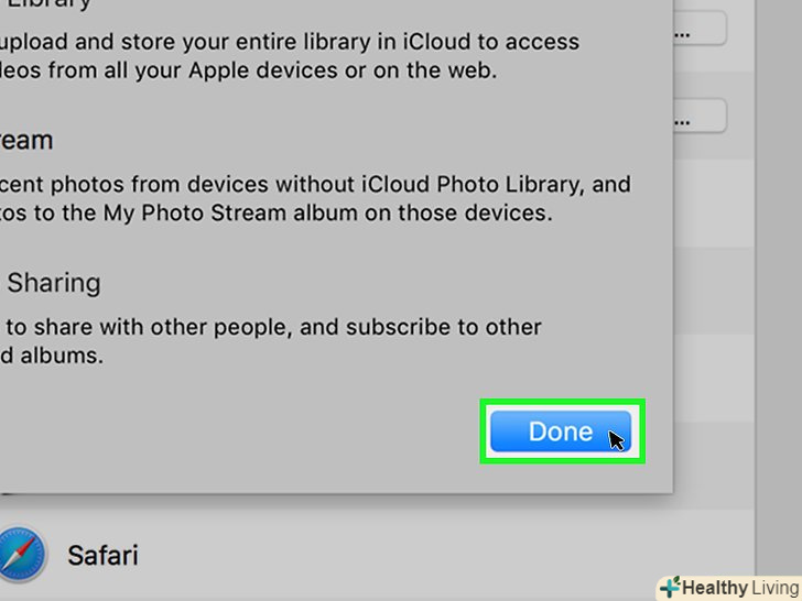 Клацніть поГотово.це блакитна кнопка в нижній частині вікна. Внесені зміни будуть збережені. Тепер фотографії, які зберігаються в пам'яті iPhone, можна відкрити в програмі «Фото» на комп'ютері, хоча на те, щоб вони стали доступні, піде деякий час. Клацніть поГотово.це блакитна кнопка в нижній частині вікна. Внесені зміни будуть збережені. Тепер фотографії, які зберігаються в пам'яті iPhone, можна відкрити в програмі «Фото» на комп'ютері, хоча на те, щоб вони стали доступні, піде деякий час.