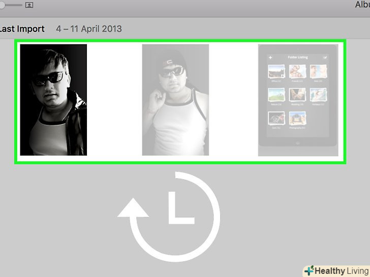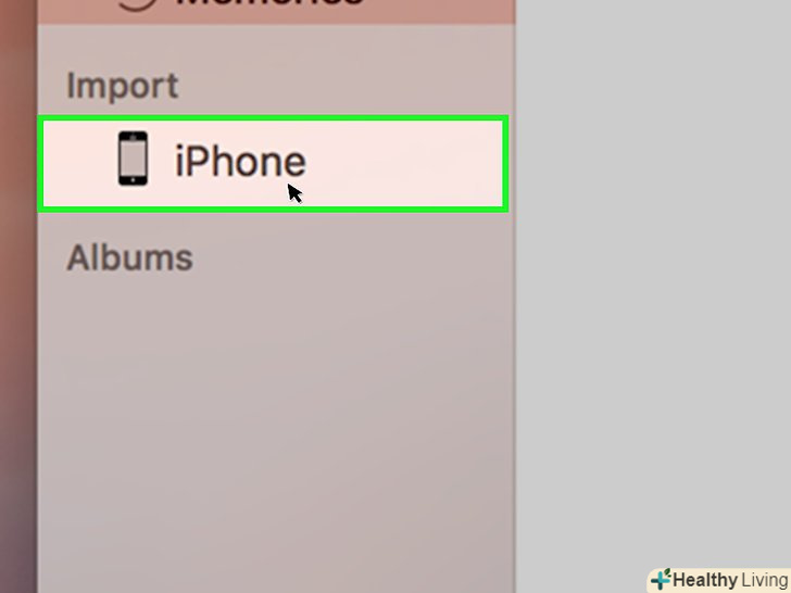 Відкрийте програму "Фото". натисніть на Різнокольоровий значок у вигляді квітки в доці. Відкрийте програму "Фото". натисніть на Різнокольоровий значок у вигляді квітки в доці.- Можливо, дана програма відкриється сама, якщо підключити iPhone до комп'ютера; в цьому випадку пропустіть цей крок.